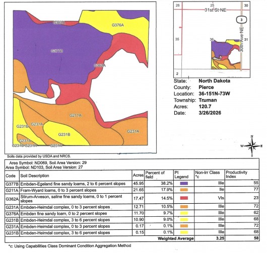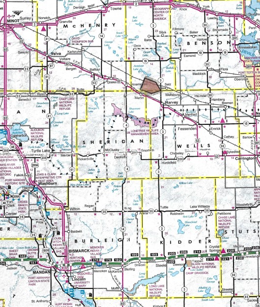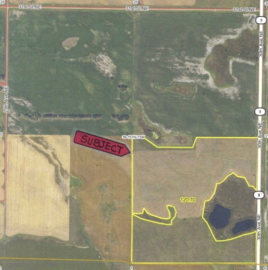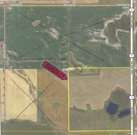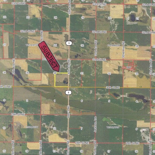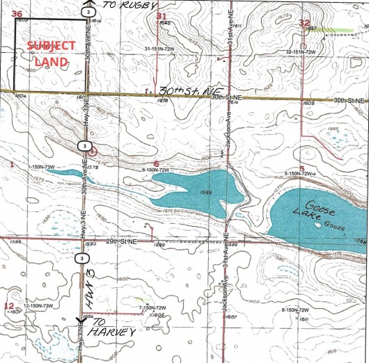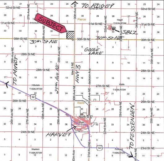 Location: From Harvey, ND travel North on Hwy. 3 for 5 Miles to 30th St. NE and the SE Corner of the Subject Property (See Map).