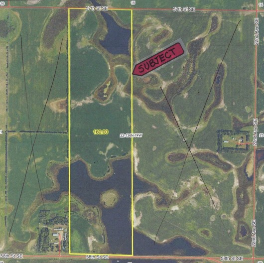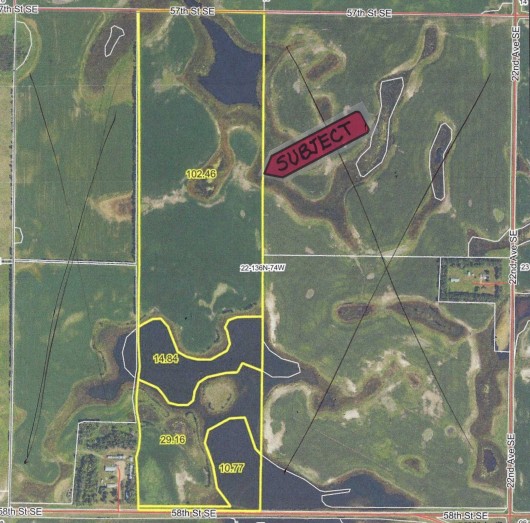 Location: From Kintyre, ND travel North on 22nd Avenue SE for 1 Mi then turn West (L) on 58th Street SE for 1/2 mile to SE corner of Subject Land. (See Plat Map & North Dakota Map Below.) To access the north side of the property, there is a decent Prairie Trail on 57th St. SE for 1/2 mile that leads to a culvert under the road that the Renter installed to bring in Farm Equipment, giving access to this Property's north side. (See Plat Map.)