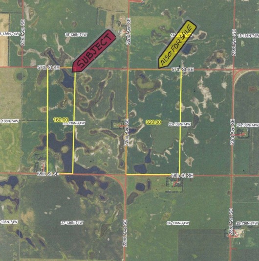 Legal Description: E1/2 W1/2 Less RW Section 22, Township 136 North, Range 74 West, Emmons County, as described on abstract with Sellers reserving all Oil & Gas rights currently owned, if any.